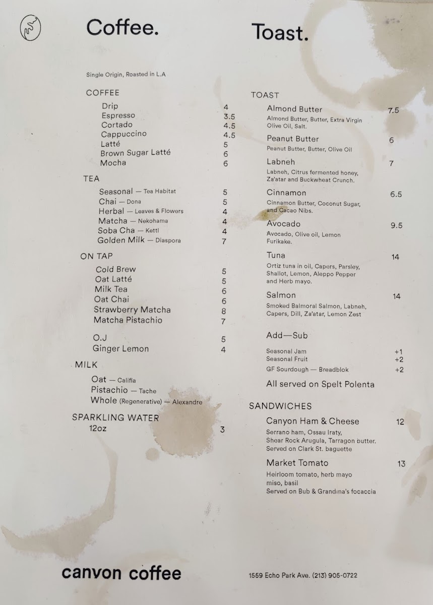 Welcome to Canyon Coffee, a vibrant gem nestled in Echo Park, Los Angeles. This café is celebrated for its expertly crafted beverages, including the standout "Hot Japanese Brown Sugar Latte," which has captured the hearts (and taste buds) of patrons. Customers rave about the unique flavor profiles, notably the Sagebrush espresso and the perfectly balanced cappuccinos. The cafe's atmosphere is warm and inviting, adorned with natural wood accents and a curated vibe that encourages relaxation.